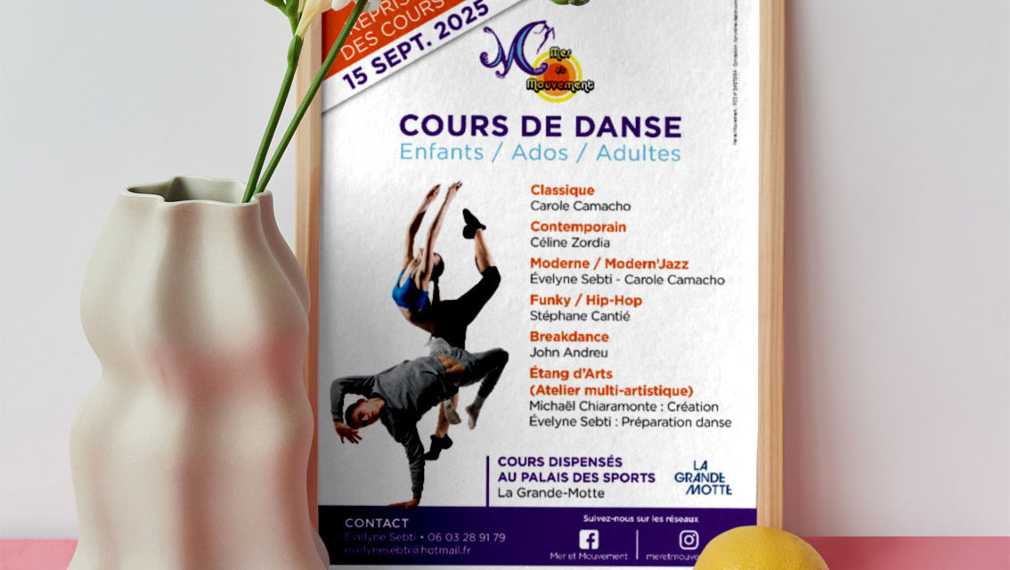 Affiche A4 pour montrer tous les cours de danse donnés par cette association basée à La Grande Motte.